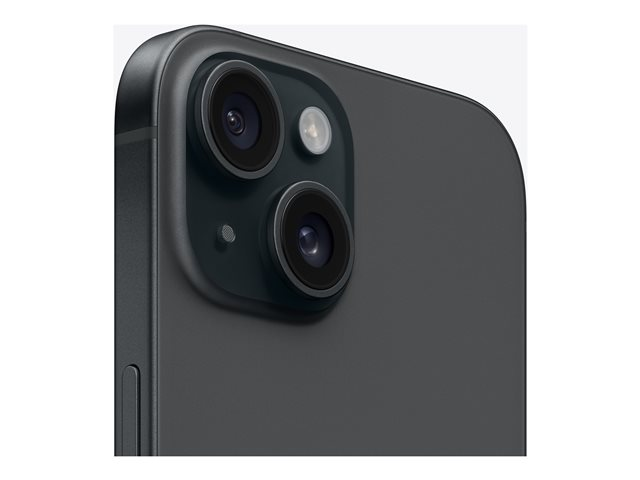 Specifications Product Description Apple iPhone 15 - black - 5G smartphone - 256 GB - GSM Product Type 5G smartphone Manufacturer Model Number A3090 Display OLED display - 2556 x 1179 pixels - 6.1" - 460 ppi - Super Retina XDR Display - HDR - fingerprint-resistant oleophobic coating, Ceramic Shield Processor Apple A16 Bionic (6-core) Neural Processor Unit (NPU) Apple 16-core Neural Engine Memory 256 GB Operating System iOS 17 Main Camera 48 Megapixel - 2x optical zoom - 26 mm - f/1.6 - focus: automatic Second Camera 12 Megapixel - ultra wide-angle lens 13 mm - f/2.4 Front Camera 12 Megapixel f/1.9 - automatic Service Provider Not specified SIM Card Dual-SIM - nano SIM, Electronic SIM card (e-SIM) Wireless Interface NFC, Wi-Fi 6, UWB, Bluetooth Security Devices Face recognition Connectors USB-C Wireless Charging Standards Qi Protection Water-resistant, splash-resistant, dust-resistant Colour Black Dimensions (WxDxH) 71.6 mm x 7.8 mm x 147.6 mm Weight 171 g Carbon Footprint 61 kg carbon emissions Rare Earth Materials 100% recycled rare earth elements Specific Absorption Rate (SAR) 0.98 W/kg (head)